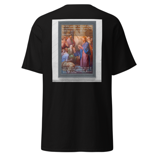 At LiveCatholic.com we provide a Unique combination of thought-provoking themes concerning our Catholic Faith and attractive apparel that is tasteful and stylish. The goal is to start a conversation with our fallen away Catholic Family, friends and our protestant brothers and sisters and bring anyone and everyone into full communion with the one true Church founded by Jesus. Alongwith the apparel, tote bags, framed prints, and other items the theme of the print is a teaching from the Catholic Church, what is the teaching, where does it come from and how does it apply to us today.
